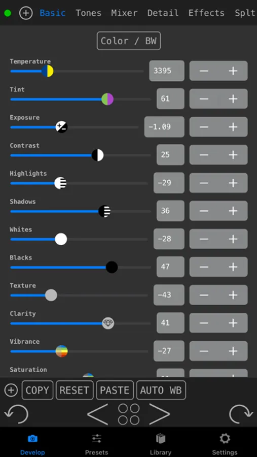 • Quickly and remotely apply your own Lightroom presets to photos.
