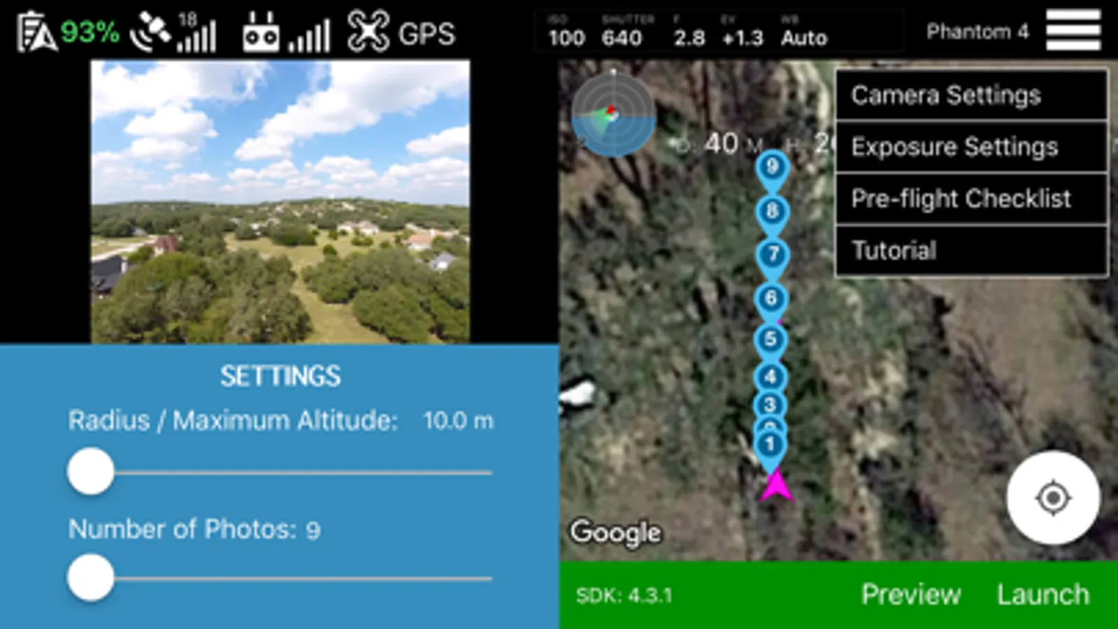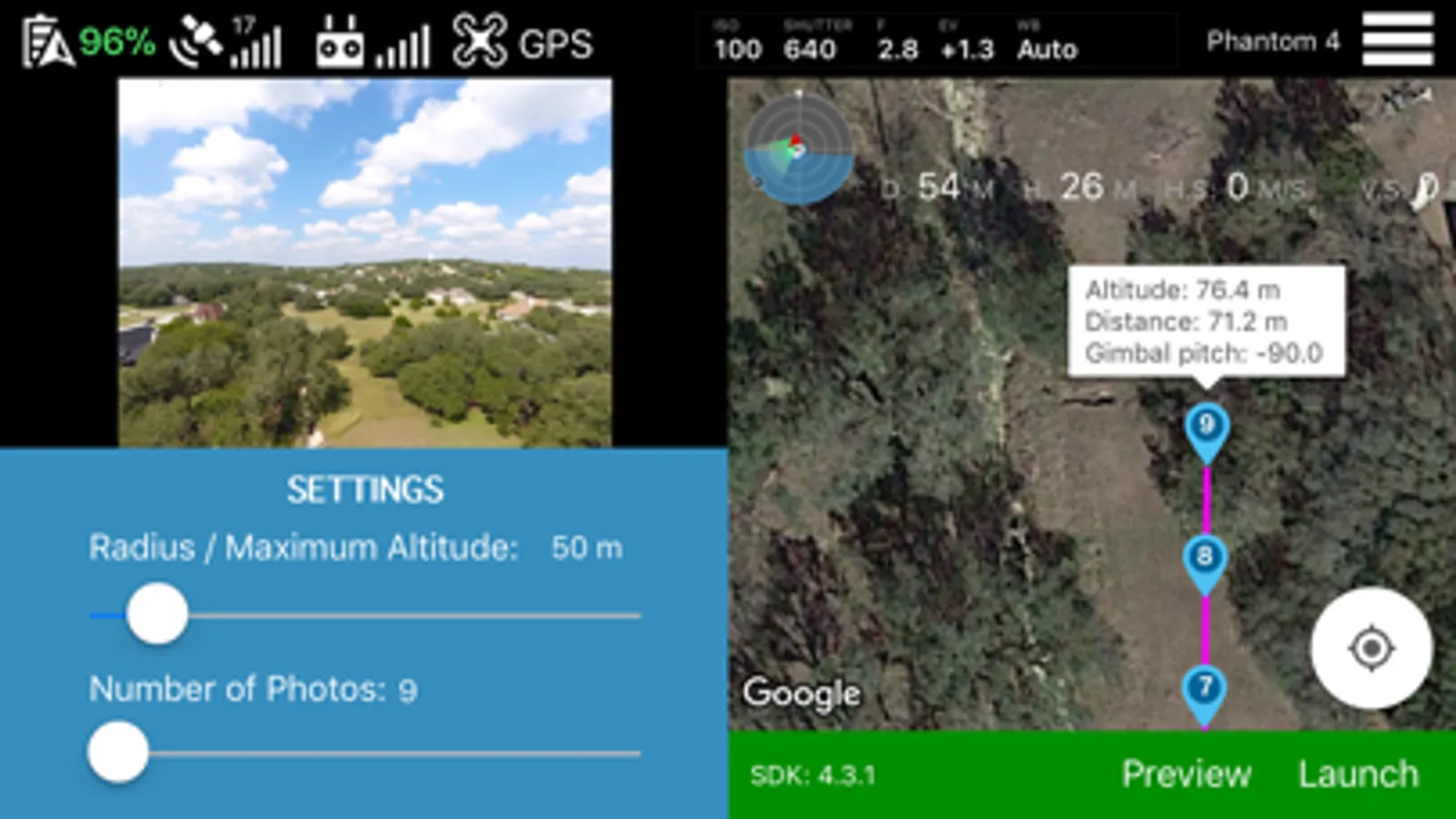 Droneception makes it easy to capture inception/flatland style photos with your DJI drone. The process is fully automated and your job is to fly to the location, preview the mission, and launch for a fully autonomous capture of photos using a basic algorithm.