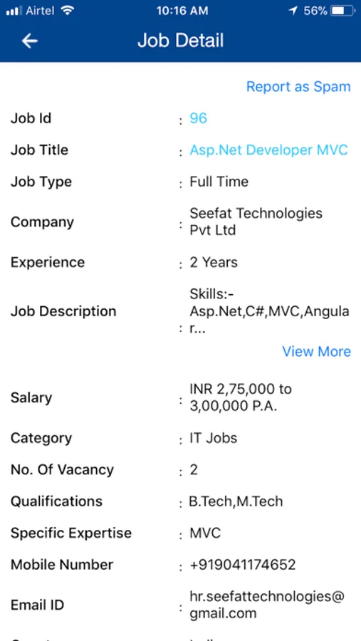 ◆ Search Job Employee can search job according to their qualification, experience, job id and skills.