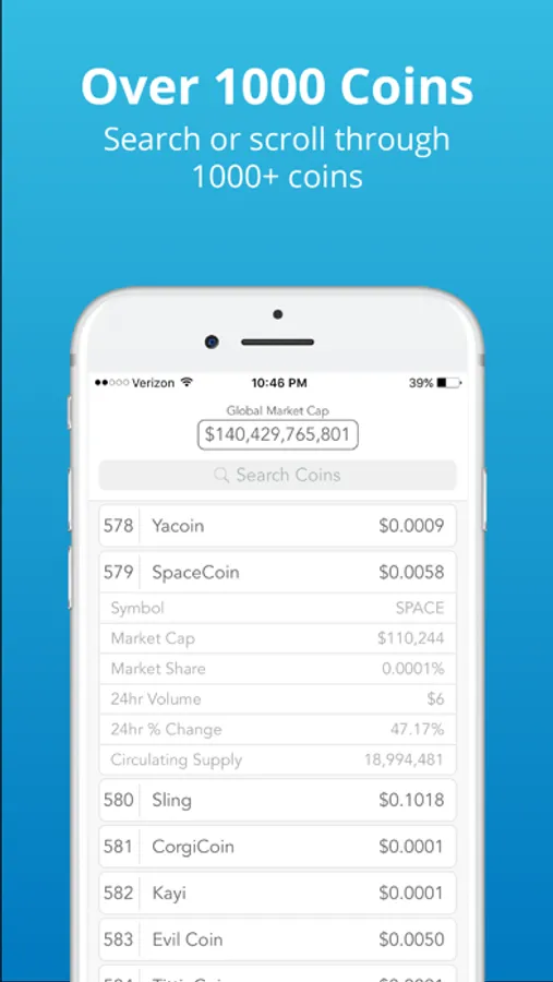 Coin rankings are determined by market cap. In addition to scrolling through the rankings, you can also: