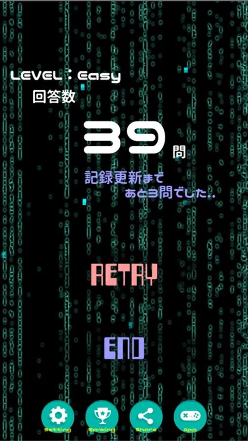 ・Touch the End button on the screen, you can end the game. Number of your correct answers and total time are display on the screen.