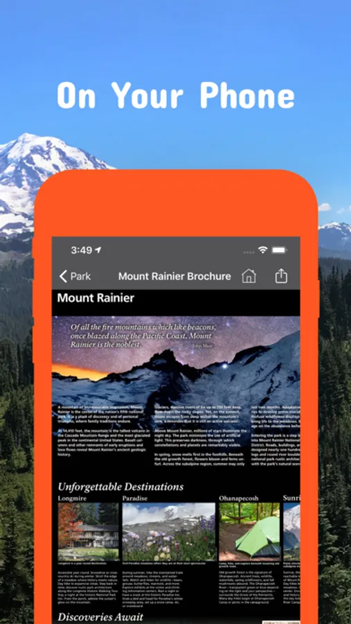 - Download maps, park brochures, and newspapers. These downloads are ready when you are offline and off the grid in the great outdoors.