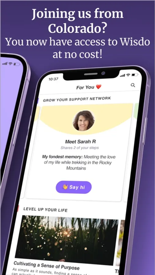Wisdo is an award-winning safe and welcoming support community, where you can connect with and meet people going through similar life challenges as you. Whether it’s stress, anxiety, loneliness, a chronic condition or a life event such as becoming a parent or a caregiver, Wisdo has a community of supportive people waiting and excited to support you in your journey towards social health.