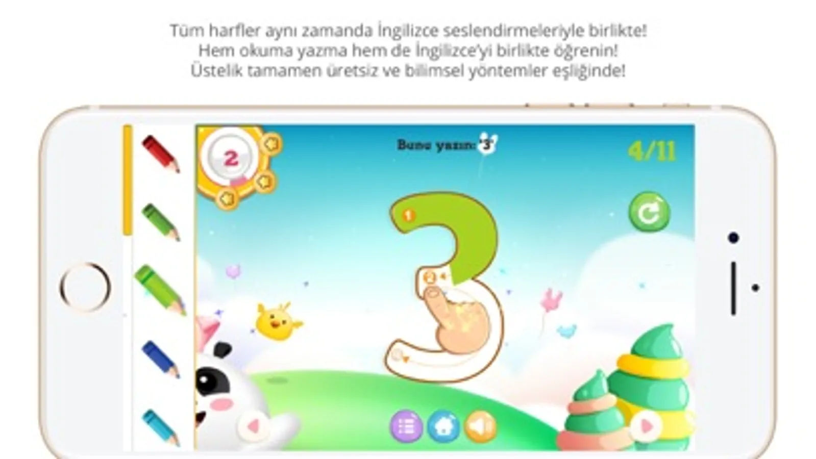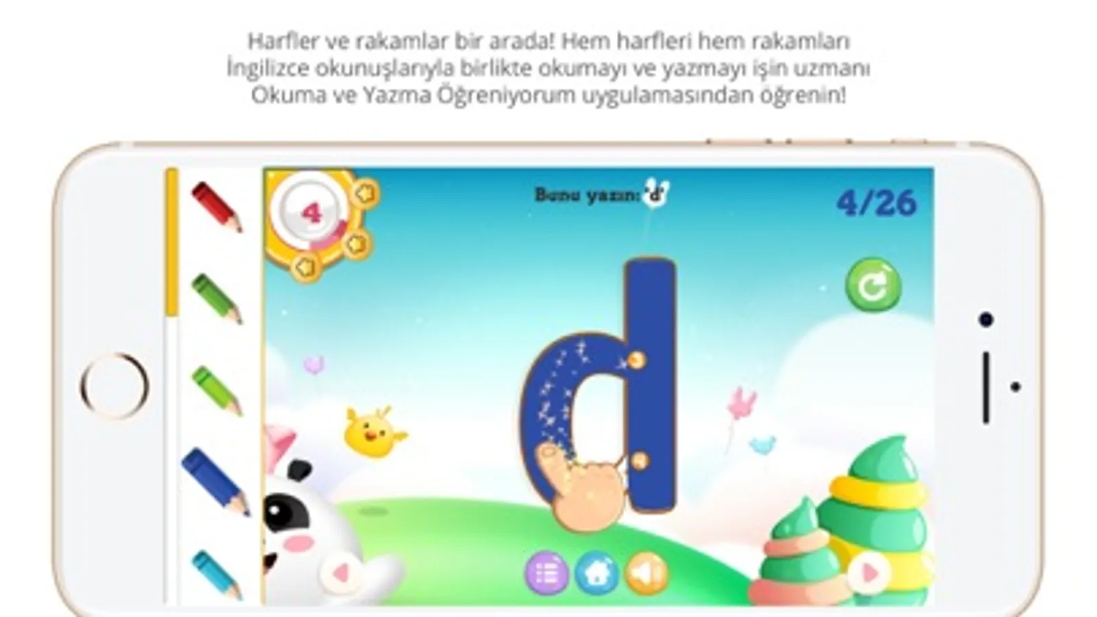 Tüm harfler ve rakamlar bir arada! Çocuğunuz hem harfleri hem rakamları İngilizce okunuşlarıyla birlikte okumayı ve yazmayı işin uzmanı Yazmayı Öğreniyorum uygulamasından öğrensin, okula başladığında arkadaşlarından bir adım önde olsun!