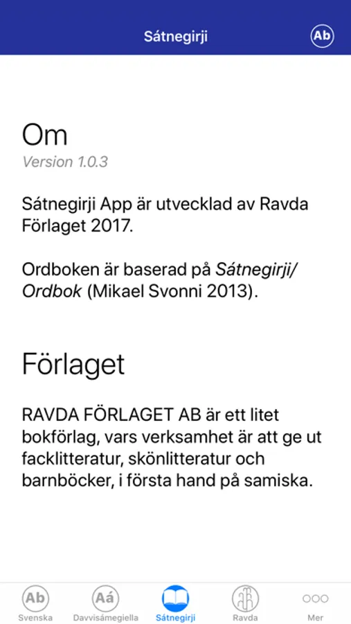 Sátnegirji App är utvecklad av Ravda Lágádus 2017.