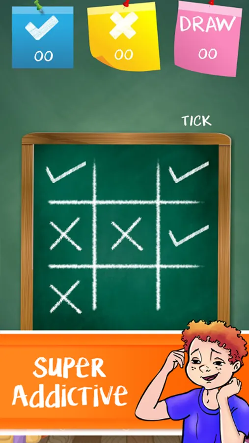Tic Tac Toe – Back to School is a fun puzzle game for kids and adults that take you back to school days. Tic Tac Toe - Back to School has a classroom filled with students waiting for some fun, when the teacher leaves the classroom students start thinking of ways to have fun. With chalks in hand and chalkboard in sight, they get a fun idea to play tic tac toe while the teacher is absent. Few students start gliding paper planes and start playing old time classic school puzzle game of tic tac toe.