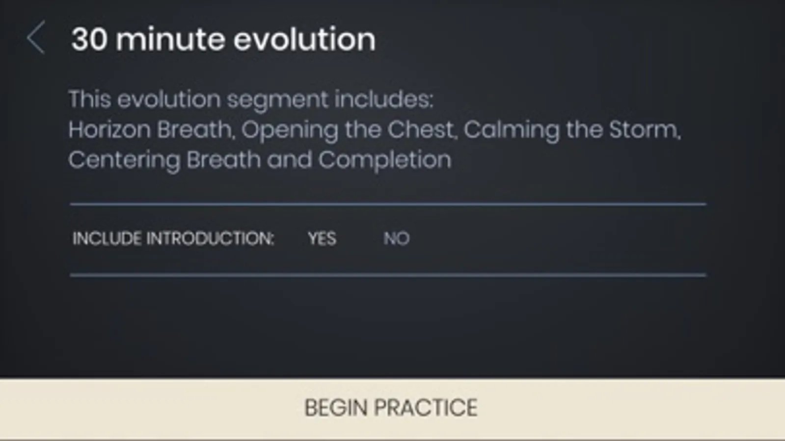 • Seated breathing evolutions ranging from 5 to 30 minutes.