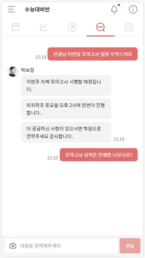 각 수업의 담당선생님과 개인적인 1:1 면담을 통한