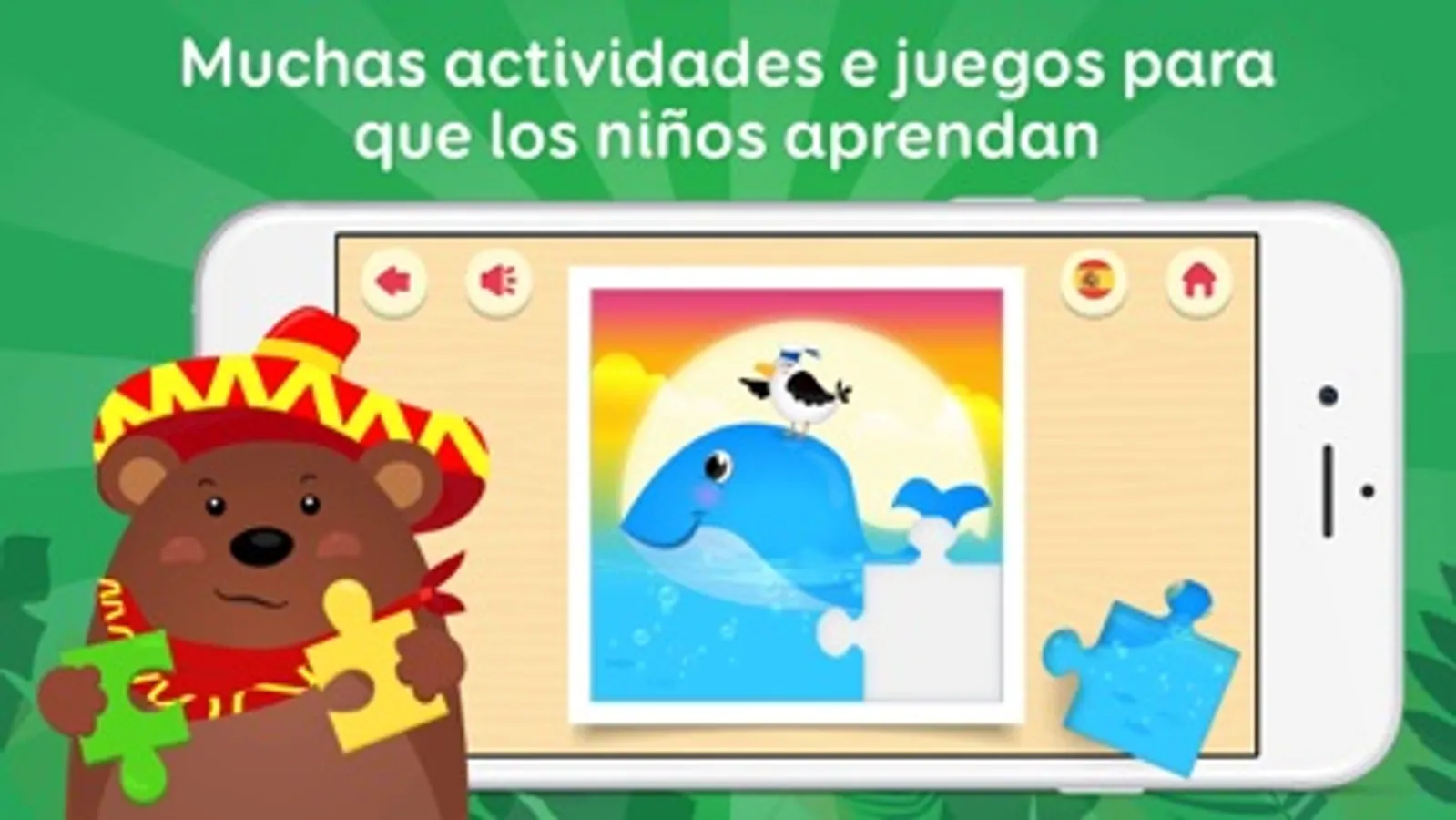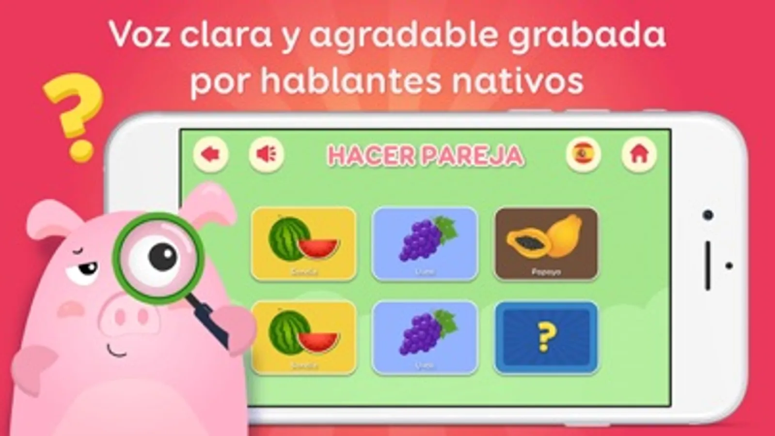 - Aprende en un ambiente divertido con atractivos efectos sonoros, con una voz en clara y agradable