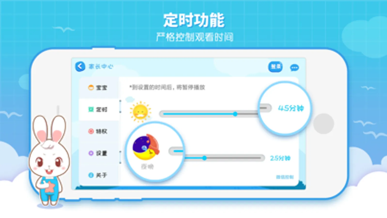 阿布故事还提供经典儿歌、英语儿歌、钢琴音乐、绘本故事、唐诗、国学,原来兔兔儿歌的动画内容在阿布故事也能使用。让宝宝有个快乐的童年,是我们共同的目标!