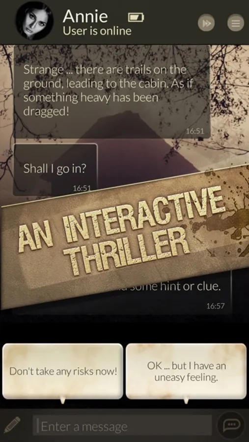 "Help Annie" is an adventurous interactive mystery thriller in the manner of a Messenger App Game – exciting, fantastic and full of suspense.