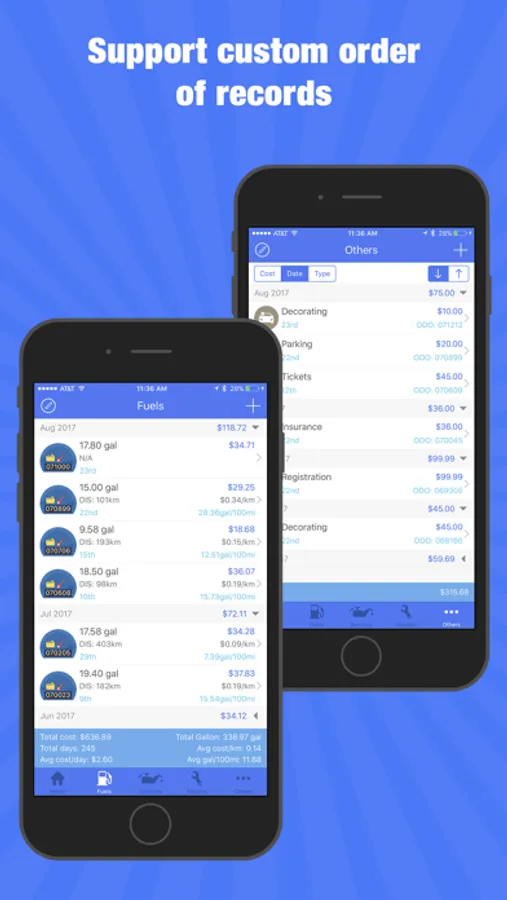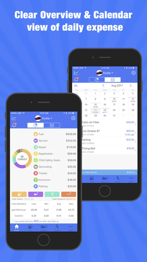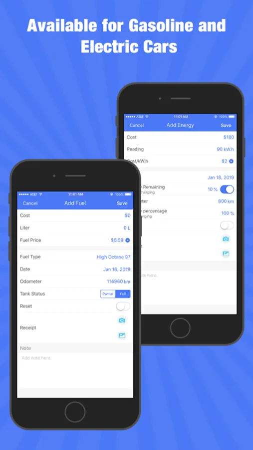 Use this app to track fuel logs / energy logs, including odometer, fuel / energy charge, price, cost, date, receipt etc, repair logs, service logs and other fees like insurance, parking, vehicle cleaning etc.