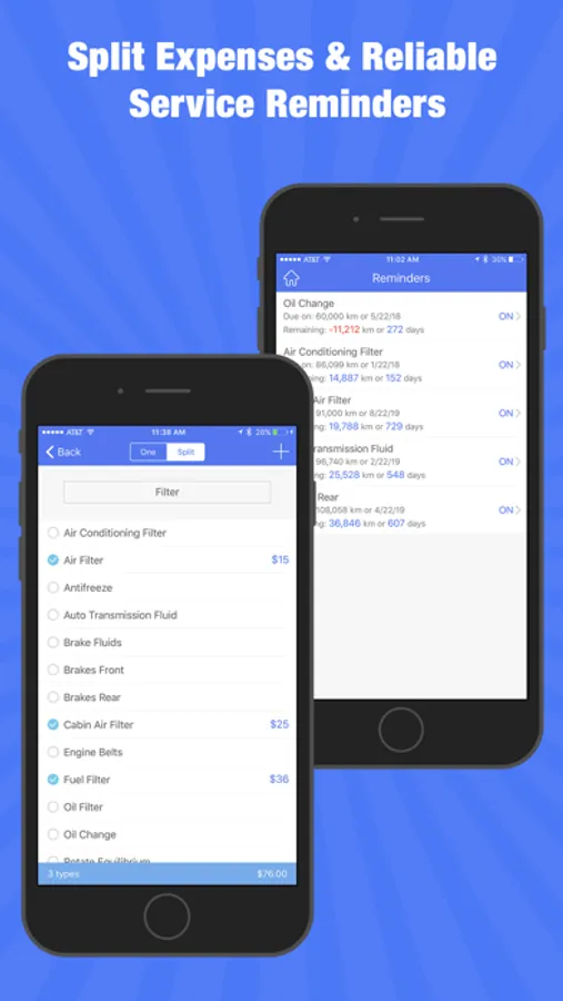 ⁃ Track fees like insurance, parking, washing, tolls, and taxes etc.