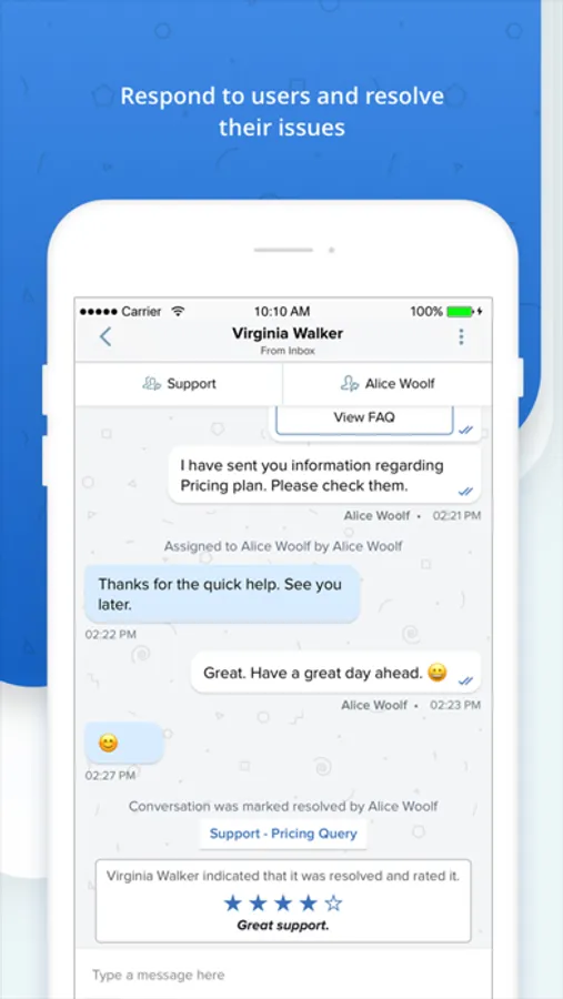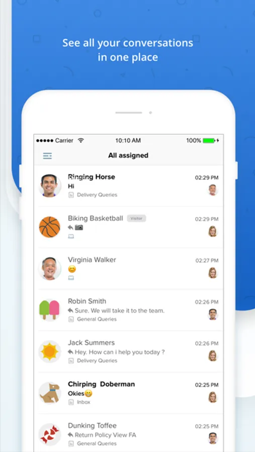 • Never miss a message - With Push Notifications, get notified when you receive replies on conversations or when a user proactively reaches out. Stay on top of messages even when you’re not inside the app.