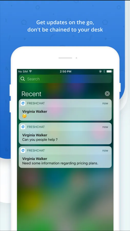 Engage with website visitors and users on the go with the Freshchat (formerly Freshdesk Messaging) iOS app.
