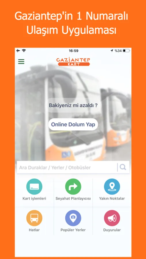 Gaziantep kentine daha kaliteli bir hizmet sağlamak üzere sunduğumuz Gaziantep Kart uygulaması ile şehir içi ulaşımda kendi rotanızı çizebilir, Gaziantep Kart 'ınızın kullanım geçmişini izleyebilir, beklediğiniz aracın geliş saatini görebilir, araç hareket saatlerini takip edebilir, kartınıza online bakiye yükleyebilirsiniz. Bayiden yükleme yapmak isterseniz en yakın bayi bilgisini uygulamadan alabilirsiniz.