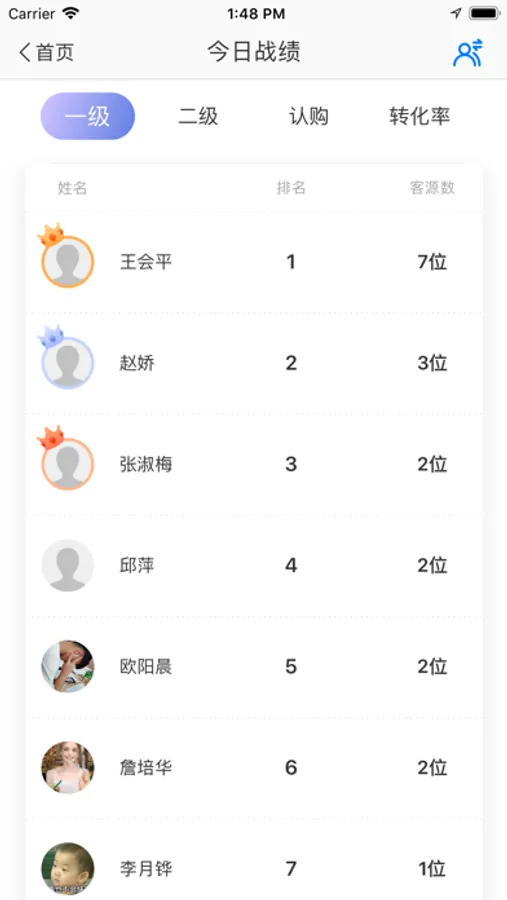 客户列表:可以看到属于自己的客户列表以及客户的流转跟进信息。