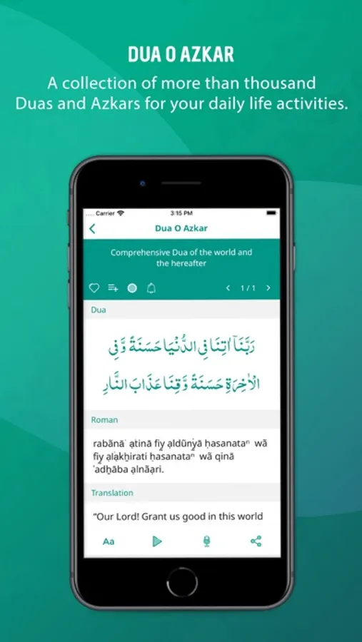 Dua O Azkar provides easy to understand transliteration for all the listed Duas for ease of recitation and helping with pronunciation.