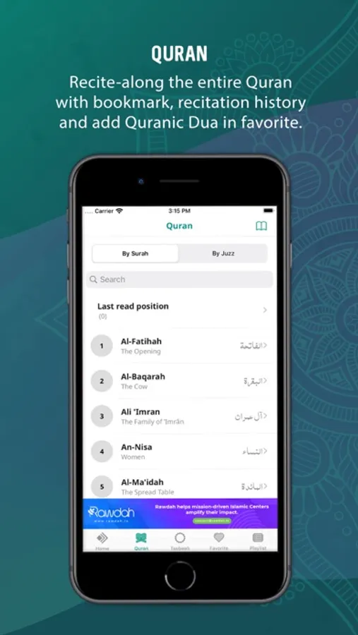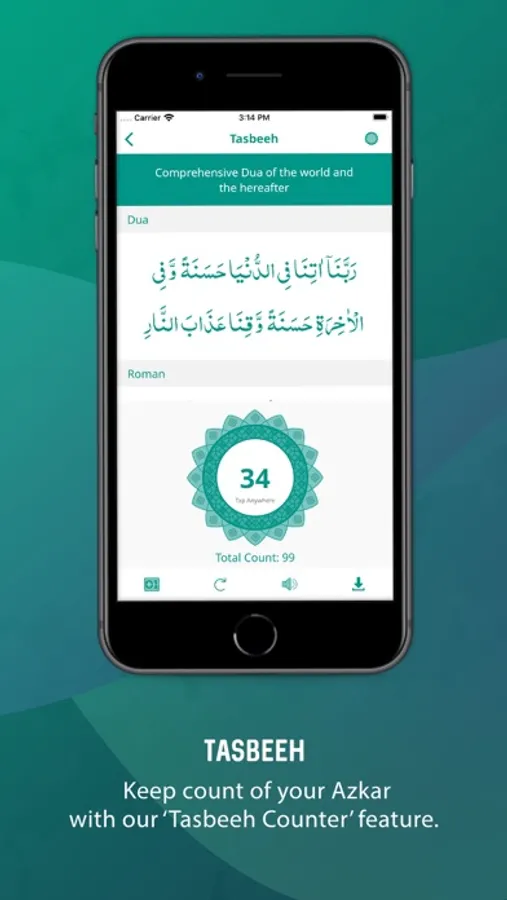 Keep track of your Azkar with the “Tasbeeh” feature. The Tasbeeh feature also allows you to add your desired Tasbeeh to My Tasbeeh Section.