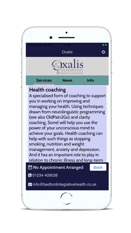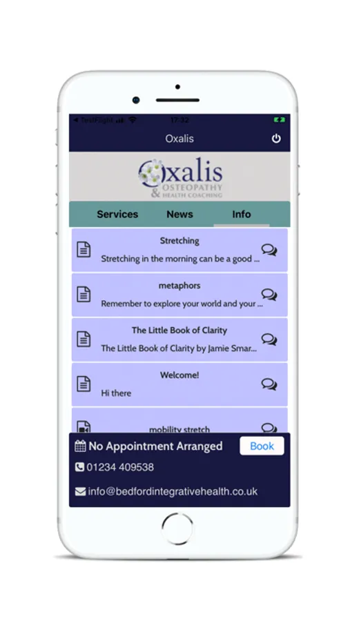 Book and cancel appointments for yourself and others, get access to tailored advice and videos (such as exercises and meditations), and keep up-to-date with our blog.