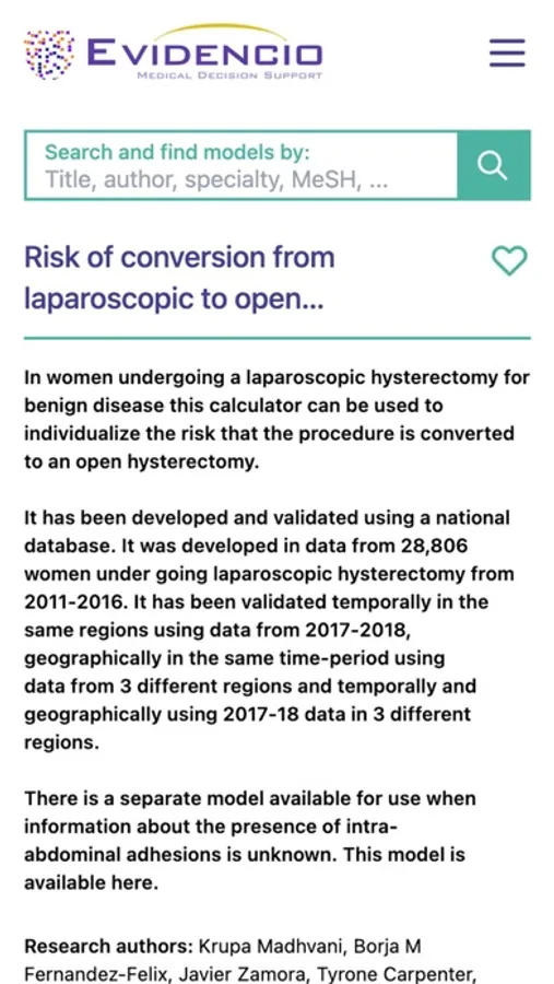 With the Evidencio App you can quickly access and use medical prediction models and calculators from Evidencio.com.