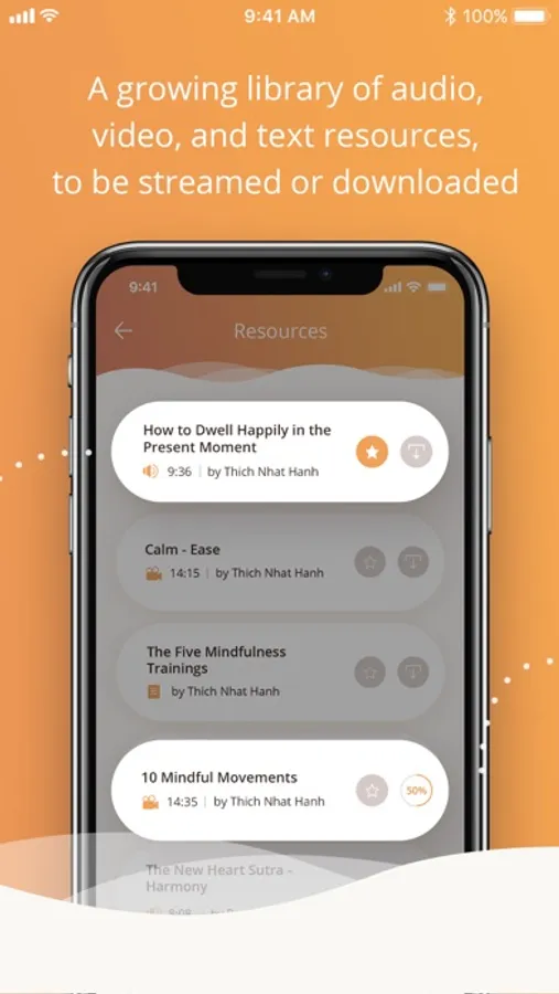 The Plum Village app is split into four easy-to-use categories – meditations, talks, resources, and bells of mindfulness: