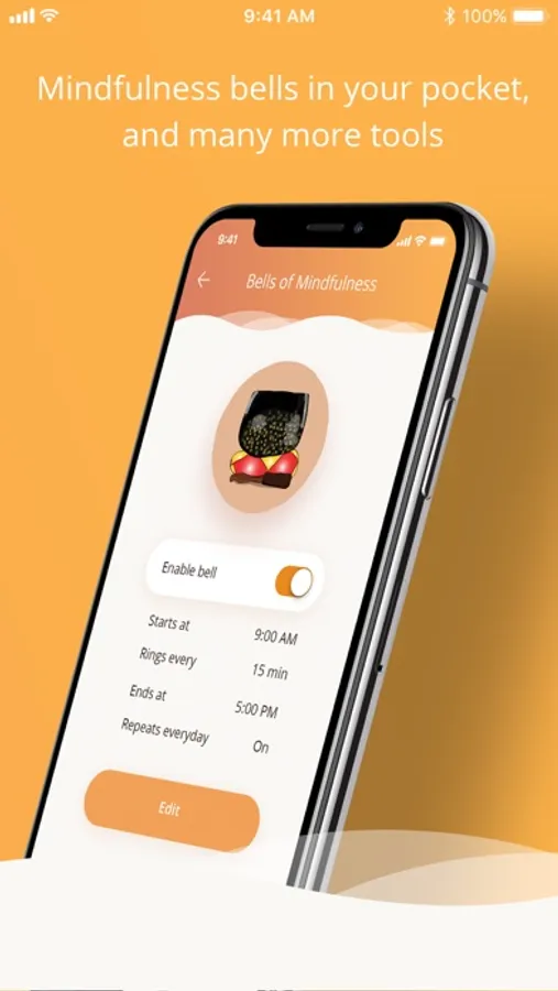 In Plum Village monasteries bells of mindfulness chime at regular intervals. Everybody stops and takes three mindful breaths to pause from their thinking or talking, breathe, and return to their bodies. The Bell of Mindfulness allows us to have the same reminder on our phone.