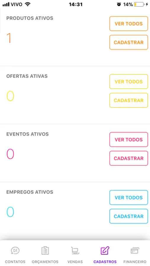 * Cadastrar Produtos, Ofertas, Eventos e divulgar vagas de emprego