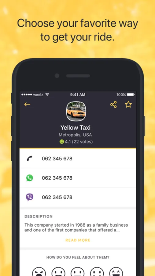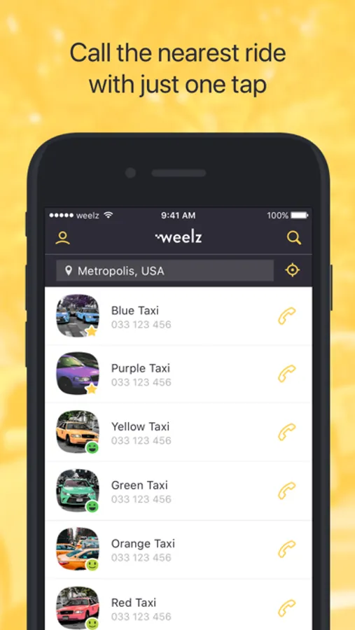 Weelz is location based taxi phonebook. It offers help in situations when you need a ride but you have no idea who to call. Weelz gives you contacts of nearby taxi companies or luxury rides, and with one tap you can get yourself a ride.