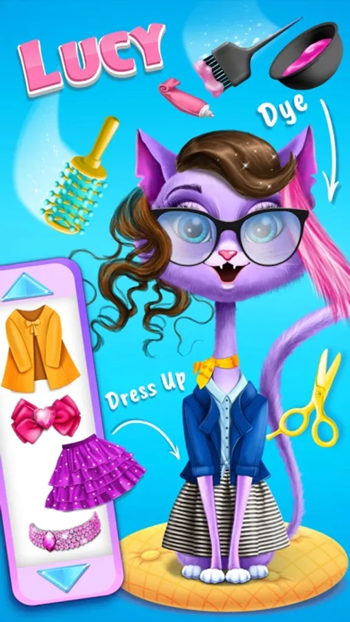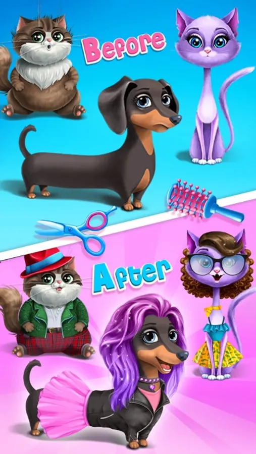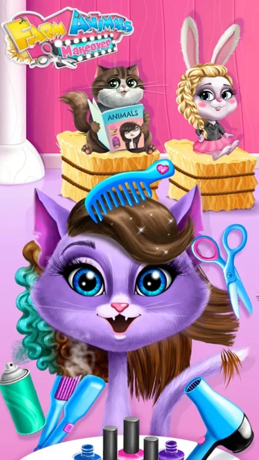 Have you ever wanted to have a bunny with a blue haircut? Or dress up a purple furry kitty in fashion clothes? Now you can have it all! Furthermore, you can create new styles and designs for dachshund Judy and gentle-cat-man Carlo in your own beauty salon. Unleash your imagination and help farm animals look stylish with colorful haircuts and trendy fashion clothes. Play and enjoy the company of the happiest furry farm animals in the countryside!