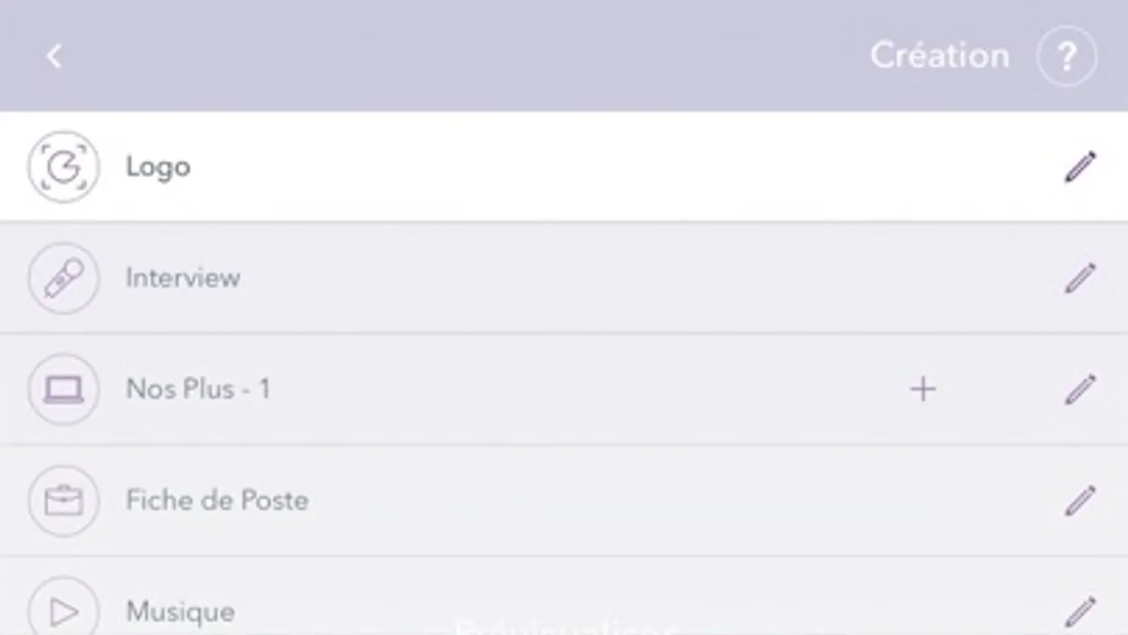 Dynamisez votre communication RH en créant facilement et en toute autonomie un véritable film pour présenter vos enjeux métiers et postes à pourvoir. Pas de paramétrage, tout est automatisé par notre application (transition vidéo, titrage, mixage son...) : laissez-vous guider par l'application pour obtenir instantanément votre vidéo en HD.