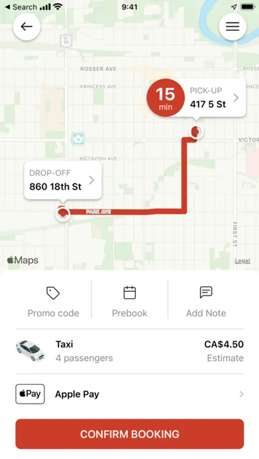 • Enter your destination address (this allows us to provide an estimated fare amount)