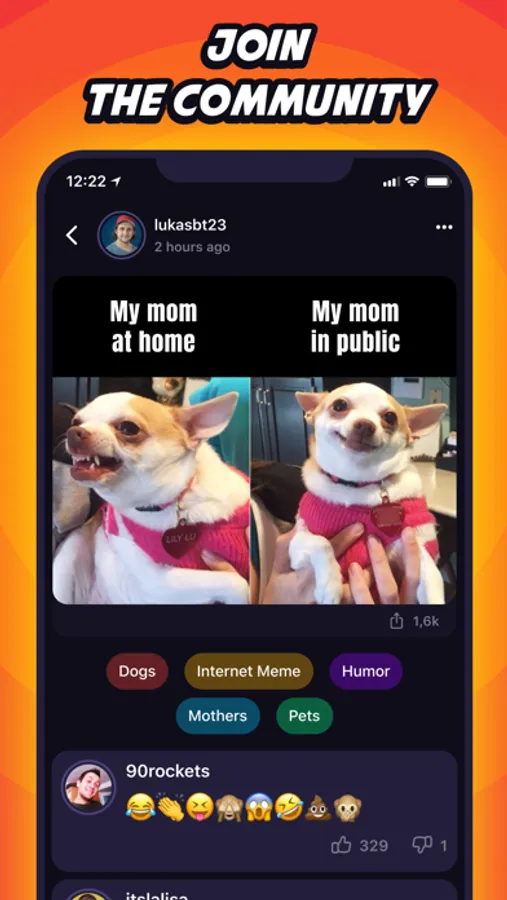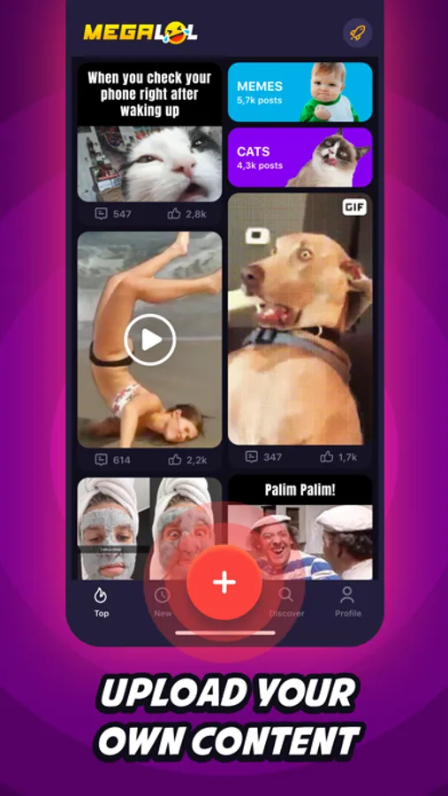 • You get an own user profile with an overview of your uploaded videos, pictures, memes, clips, GIFs or even jokes & quotes.