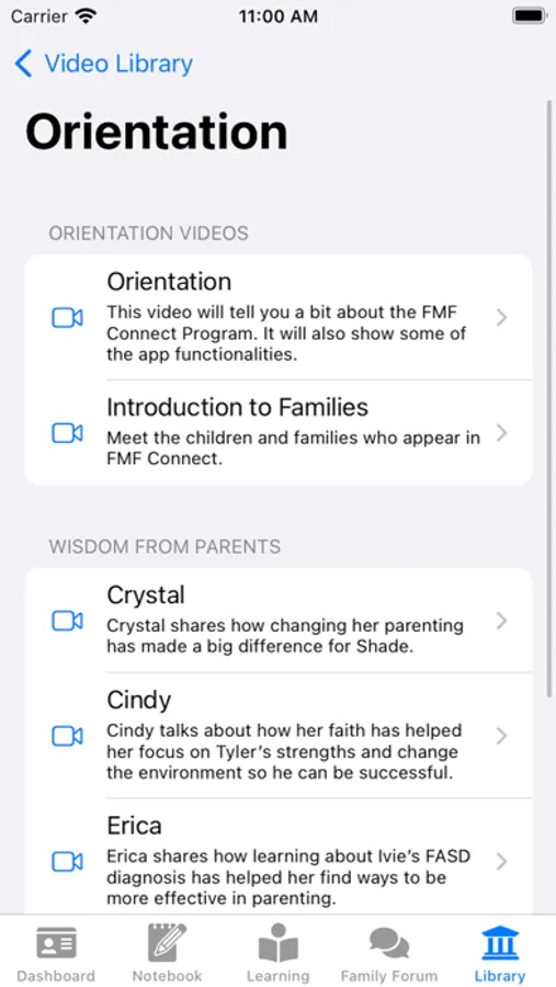 Families Moving Forward (FMF) Connect is a smartphone app developed for parents and caregivers raising children with fetal alcohol spectrum disorders.