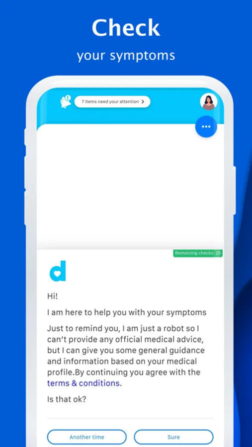 No more panicking on searching online for your symptoms. Docandu uses Artificial Intelligence technology to understand your symptoms and give you correct advice and guidance for your next steps.