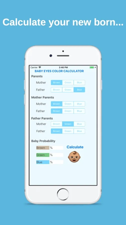 Eye color is a physical trait determined by the pairing of genes from both the parents. The baby inherits 50% of eye color genetics material from each of its parents. Genes mutate to give alternative forms called alleles, and each allele slightly differs from the other. There are three pairs of alleles responsible for eye color with each allele giving either brown, green or blue. The brown allele is dominant over green and blue; green is dominant over blue and blue is recessive.