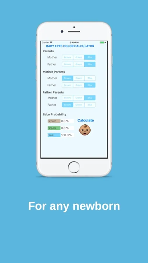 The newborn's eye color depends on both the parents' eye color and whether the alleles are dominant or recessive. The child may get two dominant alleles from the parents, one dominant one recessive or two recessive alleles.
