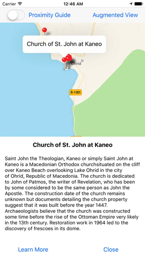 Personal Virtual Tour Guide, proximity triggered based on your location, containing over 10 interesting must-see attractions in Ohrid, Macedonia.