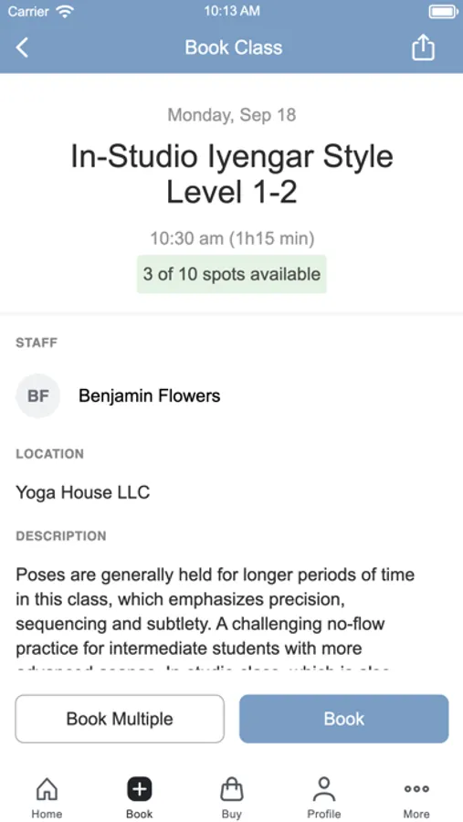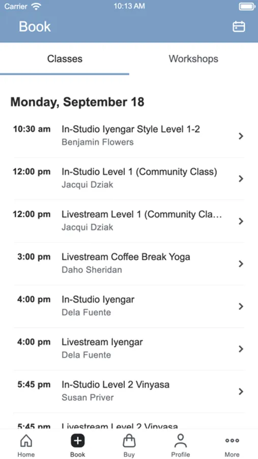 Now you can check out our latest schedule in real time and sign up for classes too. Clicking on a class will show more detail about the class including a description and a picture of a teacher. When logged in via the app, you can view your membership information, visit history, payment history, and the list of classes your are registered for, and even cancel a sign-up. You can learn more about our studio, send us an email, visit our website, or call us directly from the app. See you in class, Namaste.