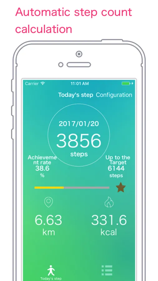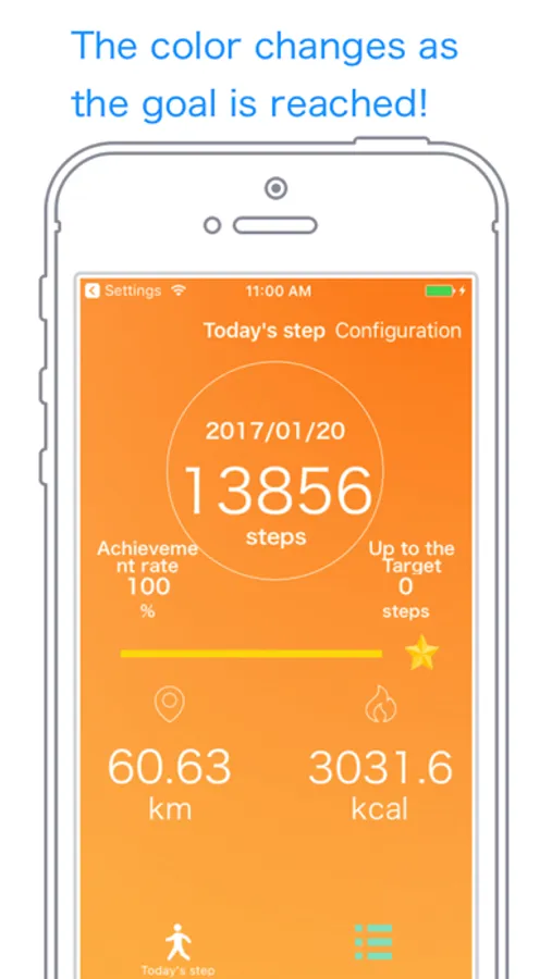 Since you can also set the target value from "Setting", you can set the number of steps you want to walk on the day and measure the degree of achievement in real time.