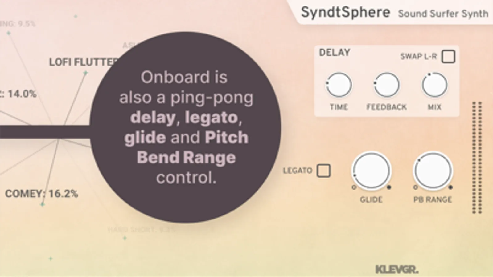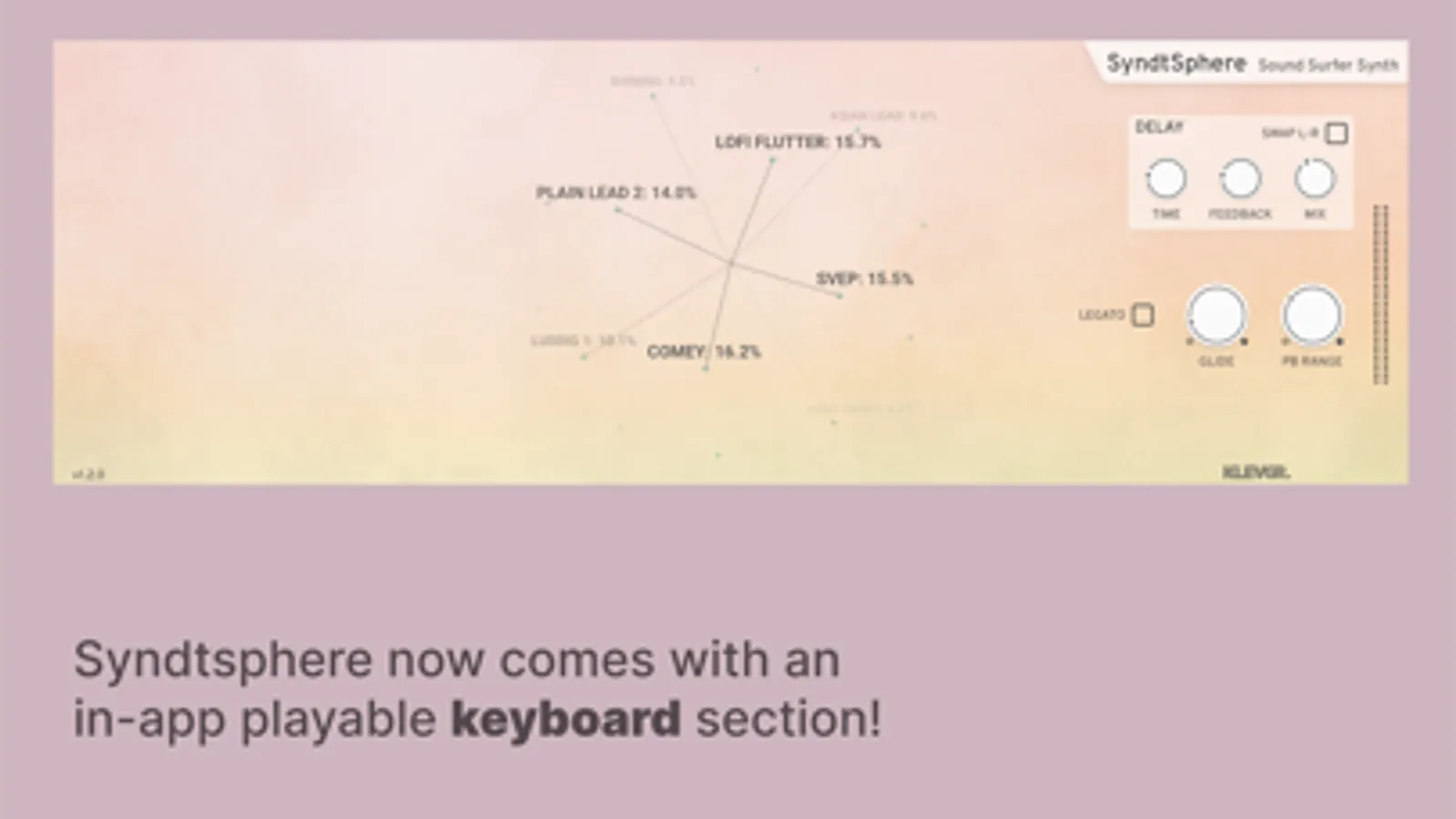 This synthesizer offers a brand new way of finding the optimal sound. By rotating a sphere that consists of more than 70 professionally created states anyone can dial in the perfect sound. In addition to the sphere, a ping-pong delay and a few more global settings are available.