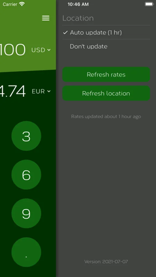 Location aware currency converter automatically detects the country you're in and picks the appropriate currency. Works offline without using data for when you are traveling without internet.