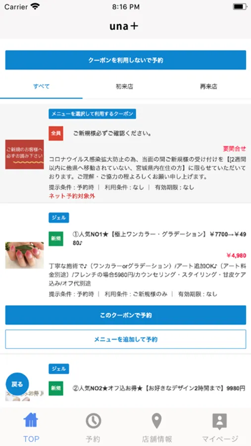 お得なクーポンが配信されます。ネット予約時にクーポン利用での予約も可能なので来店時もスムーズに施術頂けます。