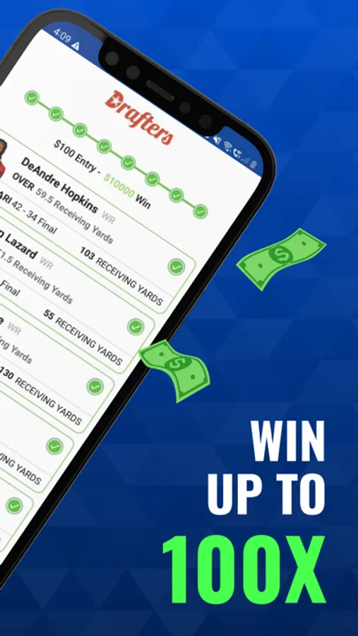 On Drafters, you can 100x your real money. We’ll say it again, 100x!