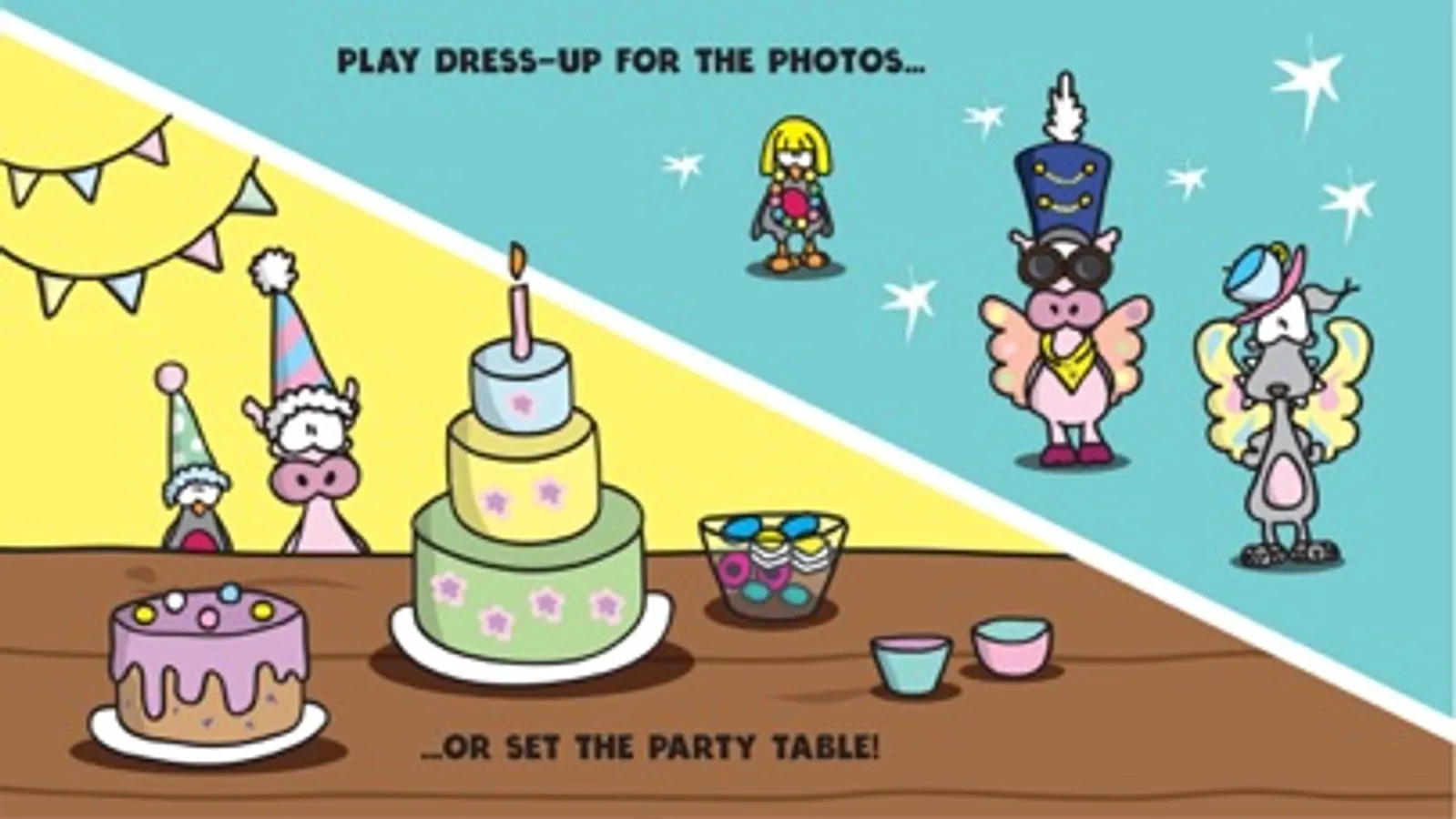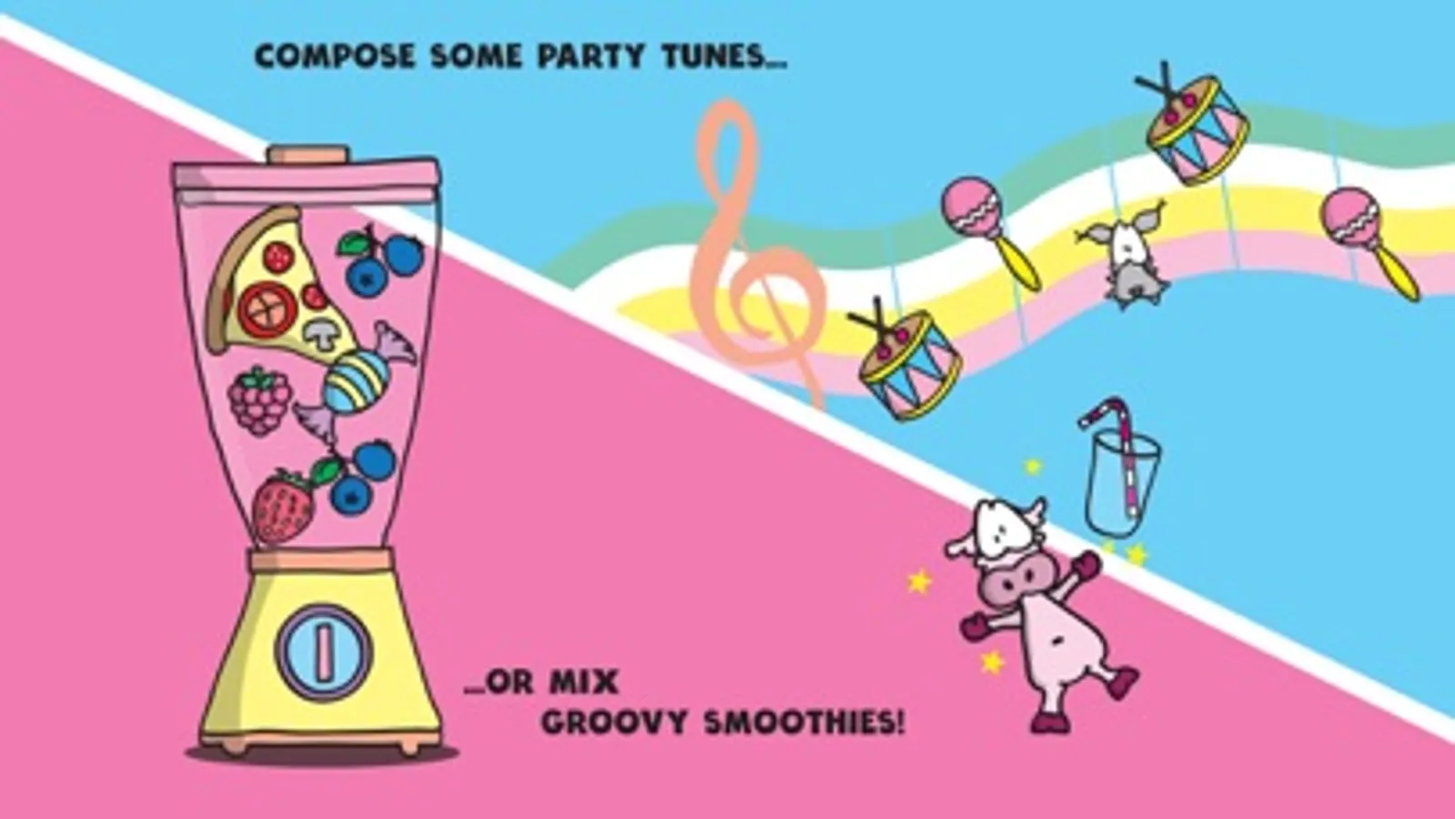The app includes eight interactive mini-games. The child gets to build giant hamburgers, compose party tunes, bake and decorate cupcakes, mix crazy smoothies, color party photos, set the party table, use presents as building blocks and dress up for a silly photo shoot. And of course there will be lots of disco dancing!