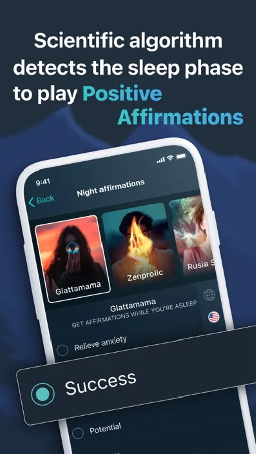 Fill your mind with positive thoughts listening to 15+ pre-recorded affirmations for health, happiness, success, mindfulness, relationships & more. Affirmations play during peak times in your sleep when your brain is most receptive.