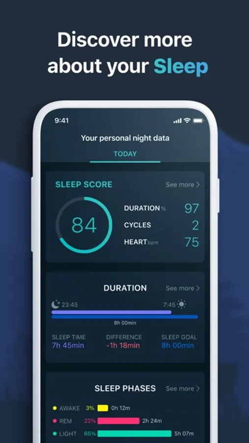 • Smart Alarm that wakes you up at the most appropriate time before the set wake-up time