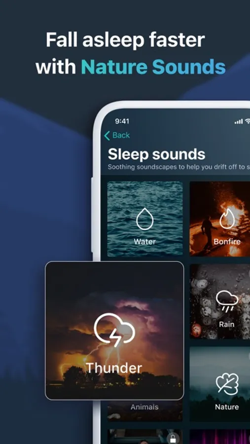 Fall asleep faster listening to relaxing sleep sounds. Listen to trickling water, fire burning, thunder, rain, animal noises & more. Create playlists with your favorite sounds and save them for later.
