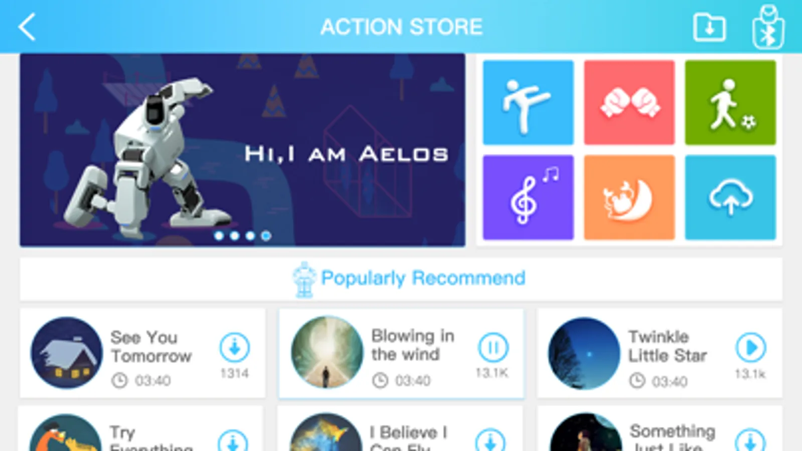 Aelos1S App connect with Aelos1S robot via Bluetooth. Based on the mobile phone's APP, below function can be accomplished: