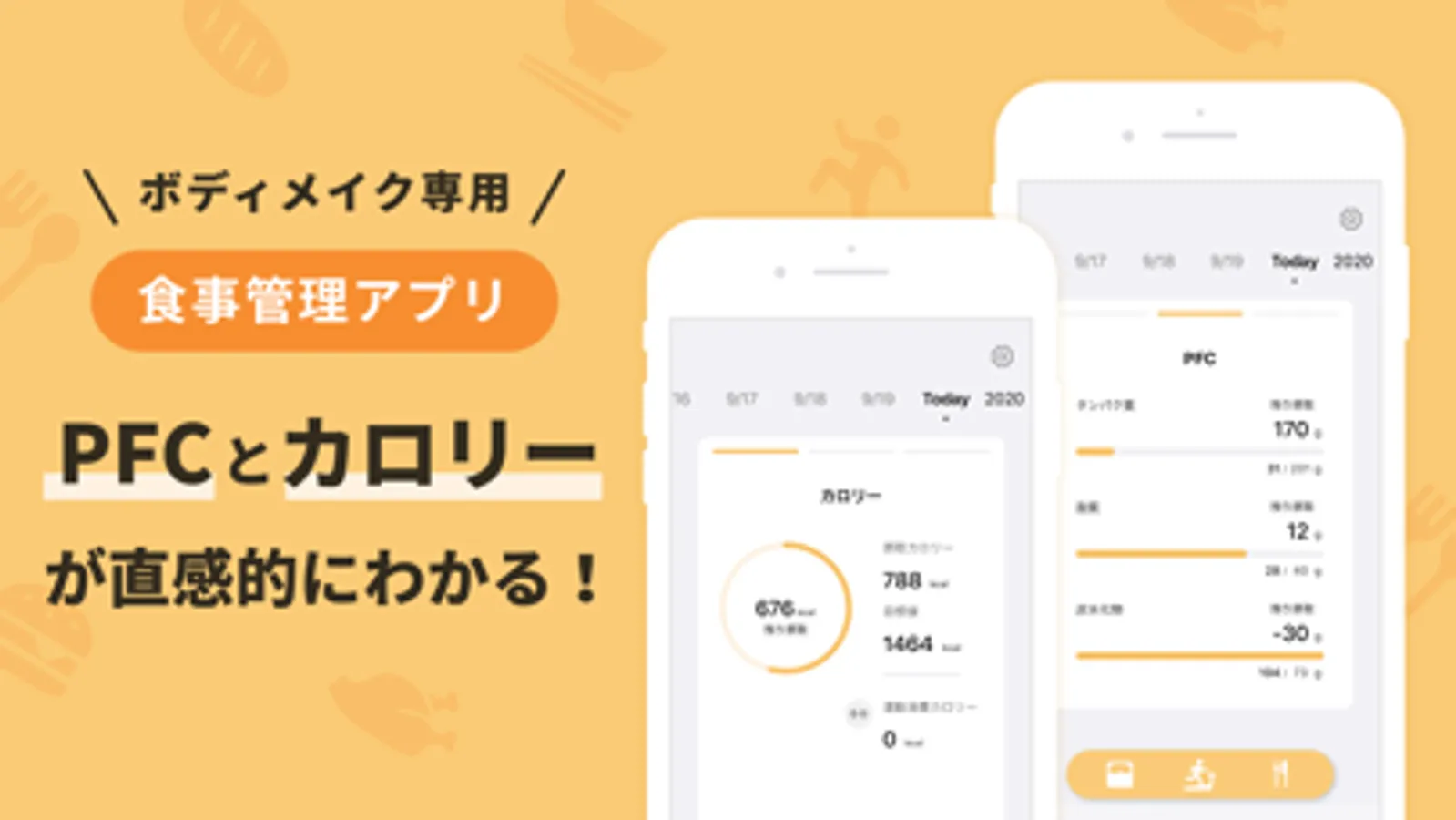 PFCボディメイクは、本気でボディメイクをしている、もしくはこれからボディメイクをする人のための食事・運動管理アプリです。